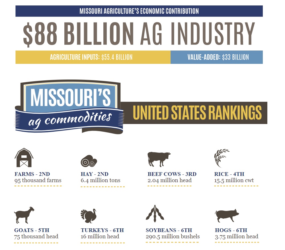 Missouri is one of the leading beef producers in the United States, and has ranked among the top three states for years. The state has more beef cows than any other state in America, except for Texas.