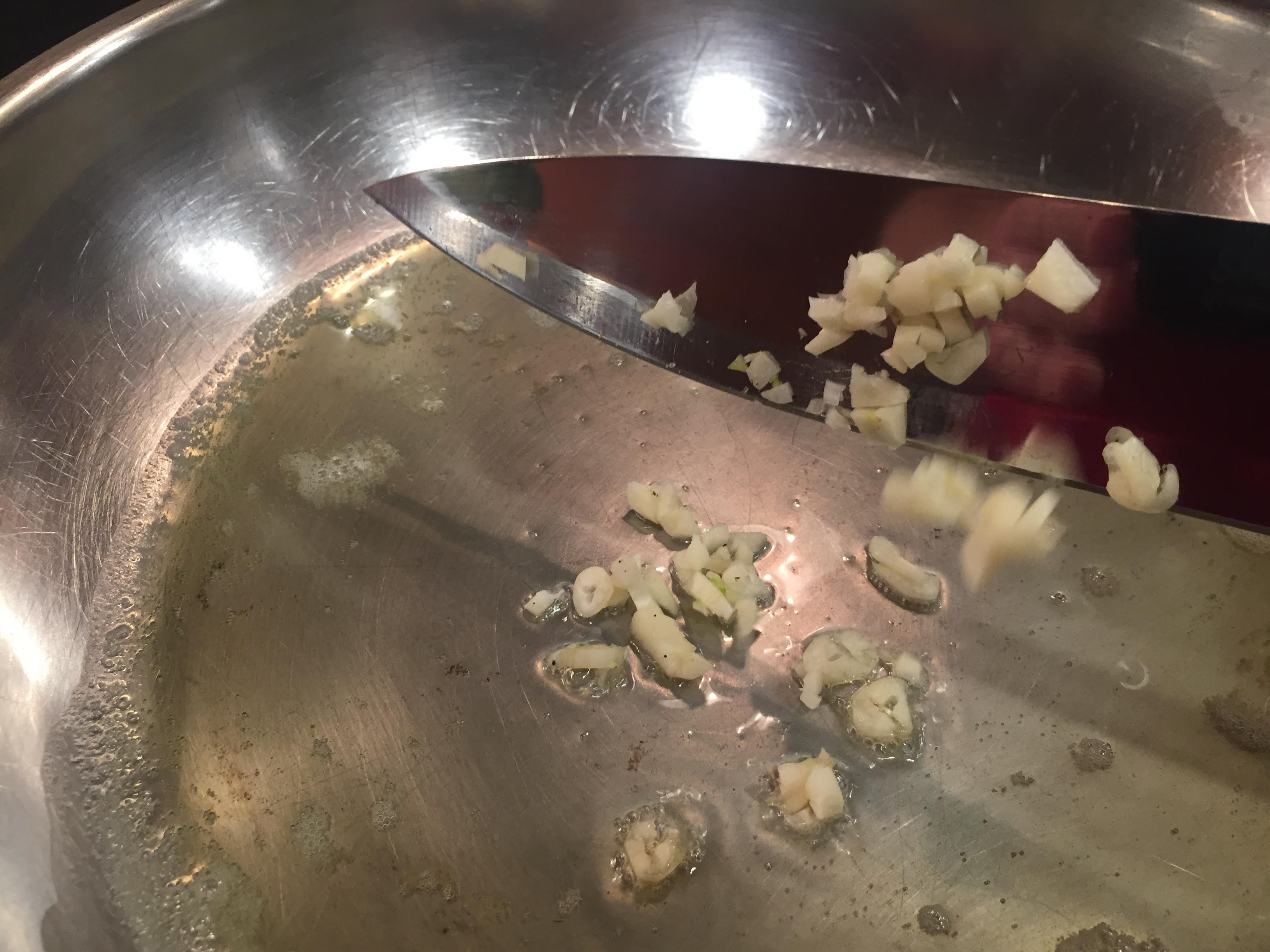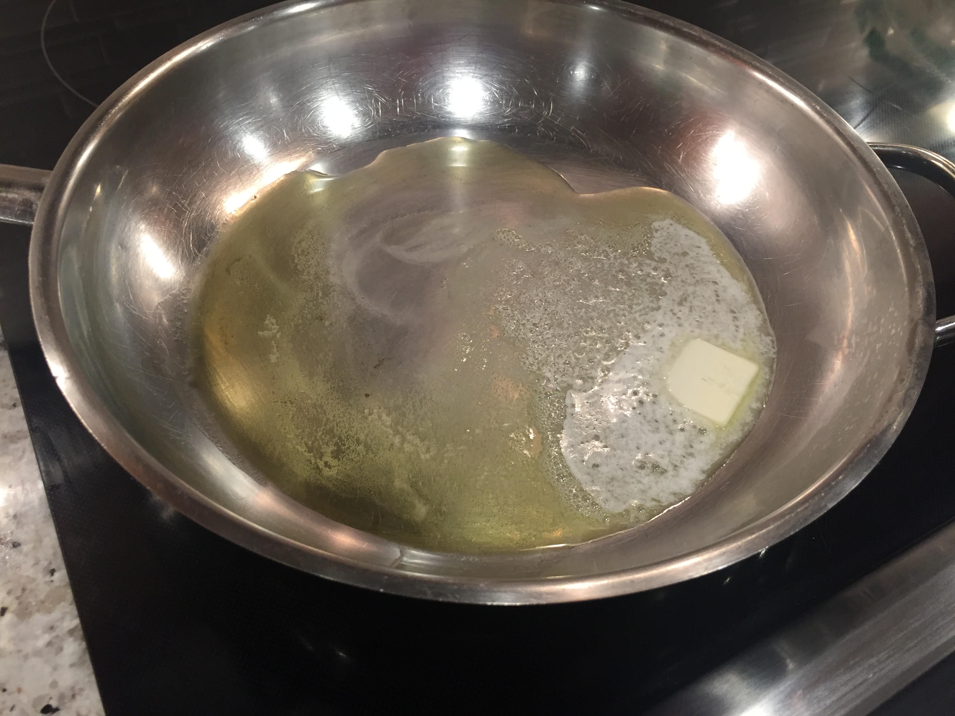 - Add 1 Tablespoon olive oil and butter to the hot skillet.