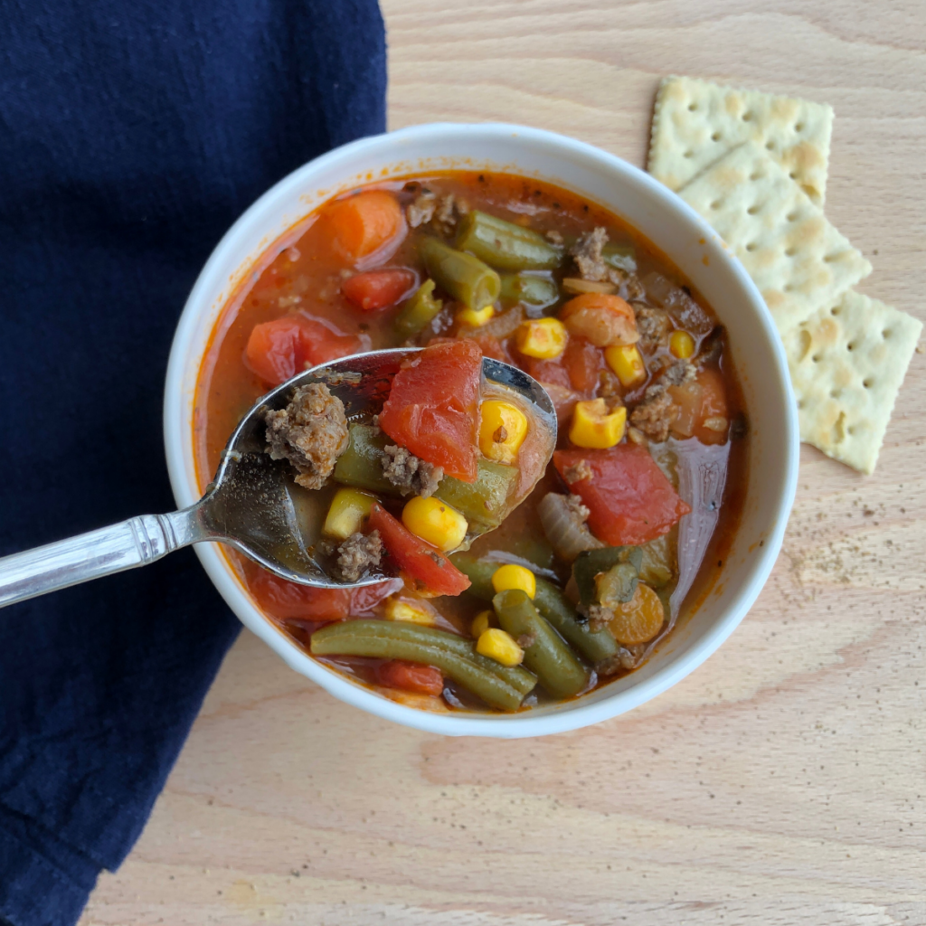 For whatever reason, there is always a specific time of the year that I make this soup — it’s always on a wet spring, chilly day. It’s a great recipe on days when I’m longing for spring and it’s just not quite here yet. This is a lighter soup with a tomato-based beef broth, and is a great way to use canned vegetables that are in your pantry.