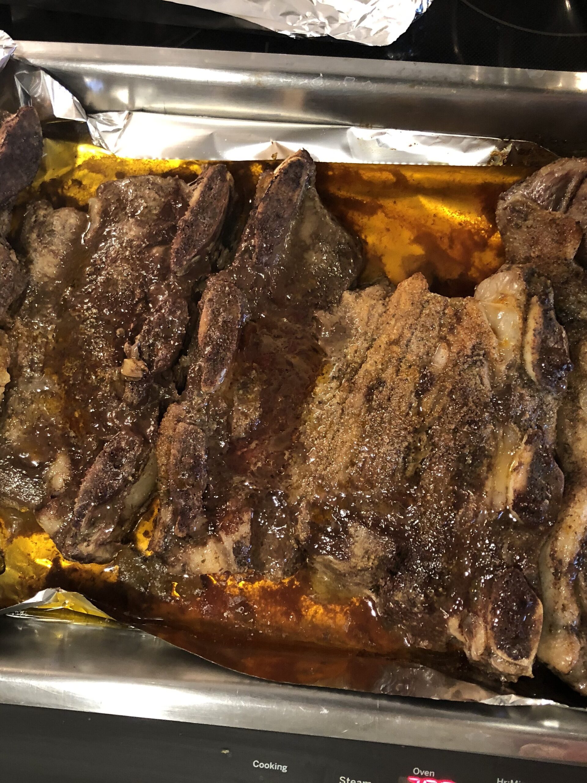 - Remove ribs from refrigerator and place on foil lined baking sheet. Cover ribs completely with another piece of foil and seal the edges so that no steam can escape