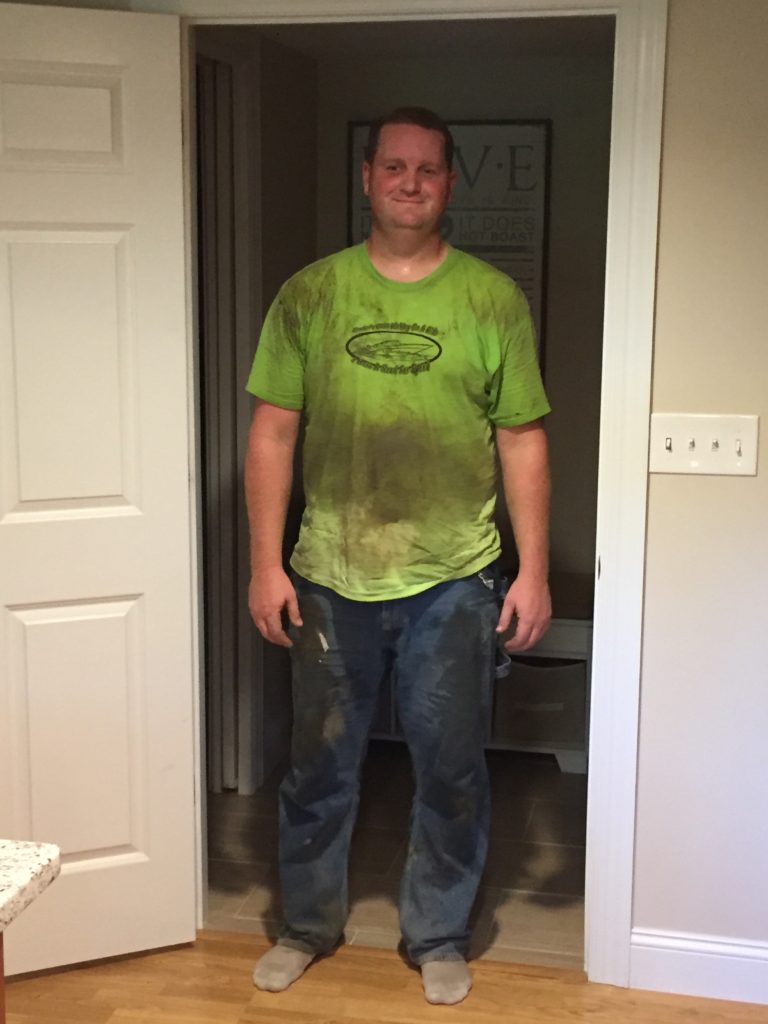 Here’s Matt setting the first corner post. See, it’s a big, heavy wood post. (heavy for me, not him!)