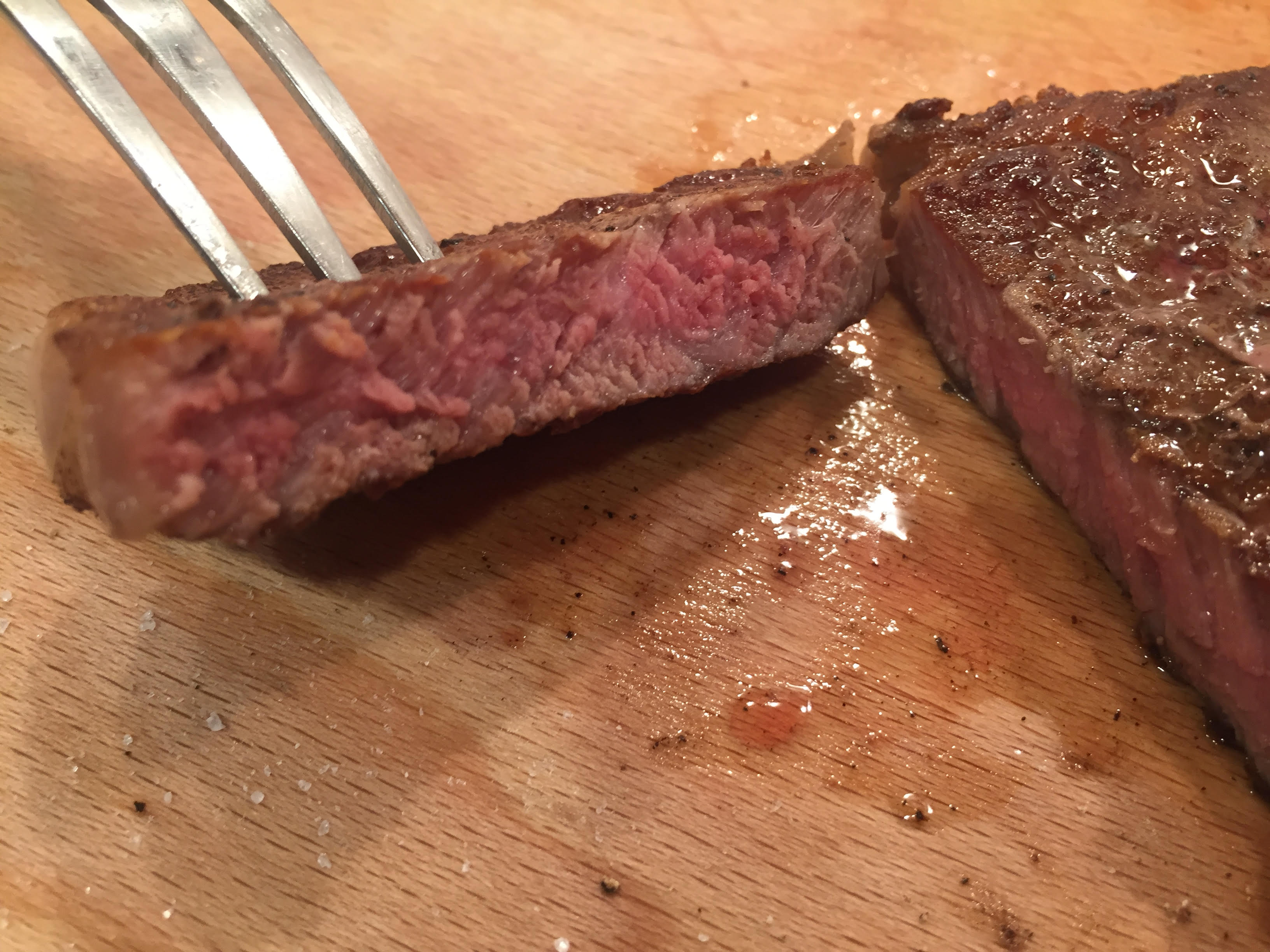 After another two minutes, your steak will be a juicy medium. Make sure you let it rest before you cut and serve.